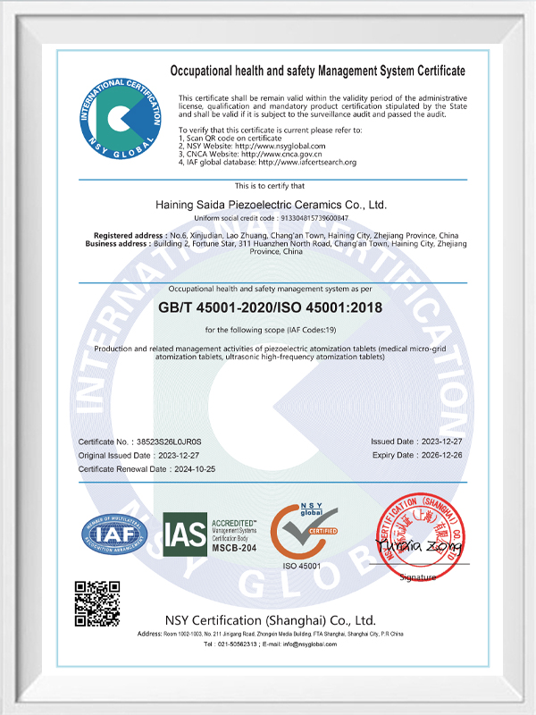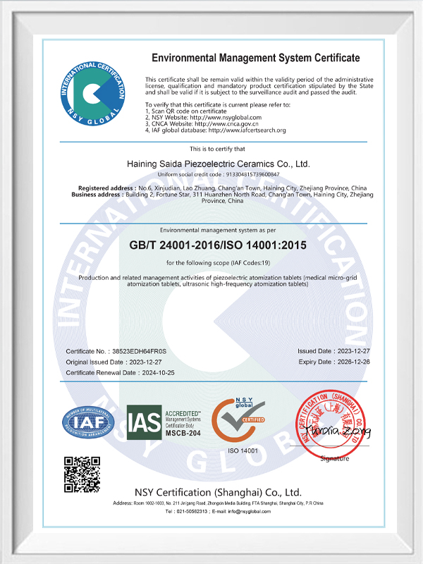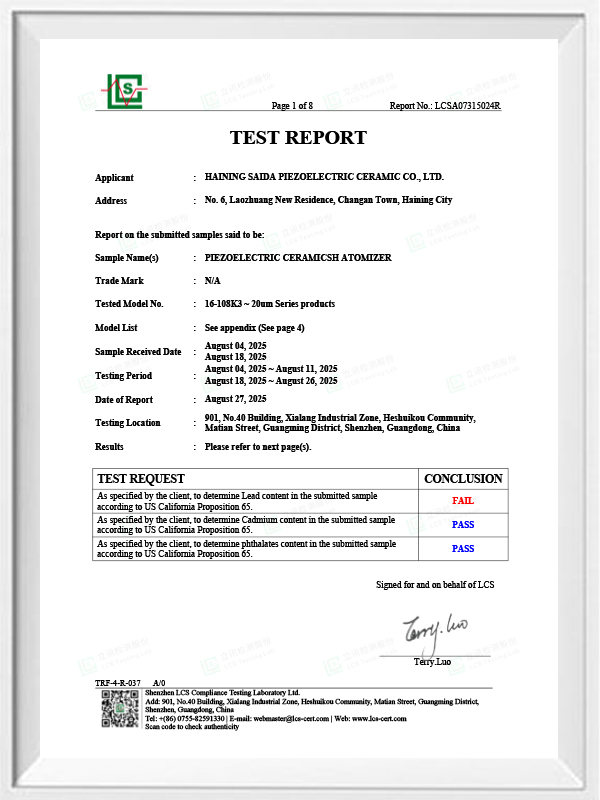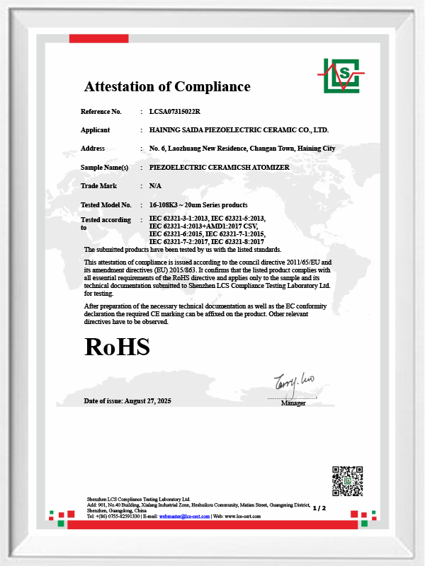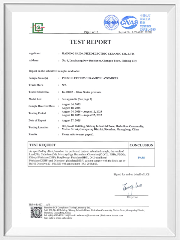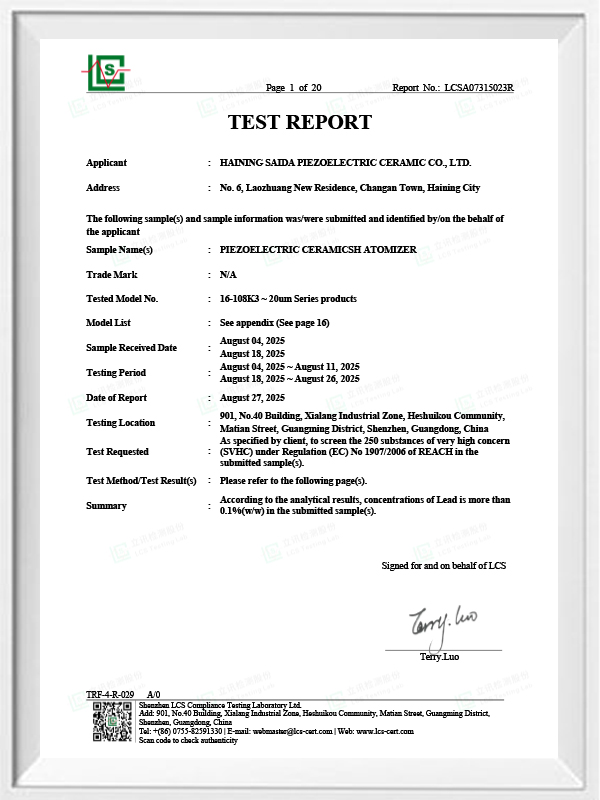 Bezolovnatá piezoelektrická keramika je známá jako piezoelektrická průmyslová „perla“, v budoucnu postupně ve všech aspektech nahradí piezoelektrickou keramiku na bázi olova, která již má stejný piezoelektrický výkon, a piezoelektrický plech na bázi olova. Je zcela netoxický, nezávadný, bezpečný a šetrný k životnímu prostředí, neobsahuje olovo, antimon a další těžké kovy a další prvky s omezením Rohs, vysoká Curieova teplota Tc-328°C, velmi nízká elektrická ztráta TangentLoss Bezolovnatý piezoelektrický lékařský atomizační čip má proto velkou komerční hodnotu a univerzální hodnotu, skutečně netoxická a ekologická, bezolovnatá piezoelektrická keramika kromě neznečišťujících, piezoelektrických výkonů srovnatelných s keramikou na bázi olova, se stane oblíbenou piezoelektrickou keramikou šetrnou k životnímu prostředí. Po letech výzkumu a vývoje, po neustálém testování a experimentování, se společnosti podařilo vyrobit bezolovnatý lékařský atomizační čip tak, aby dosáhl stejného množství atomizace jako atomizační čip na bázi olova a stejných požadavků na průměr částic. Bezolovnatý lékařský nebulizační čip Mesh bude jistě zářit a získá širokou škálu scénářů použití.